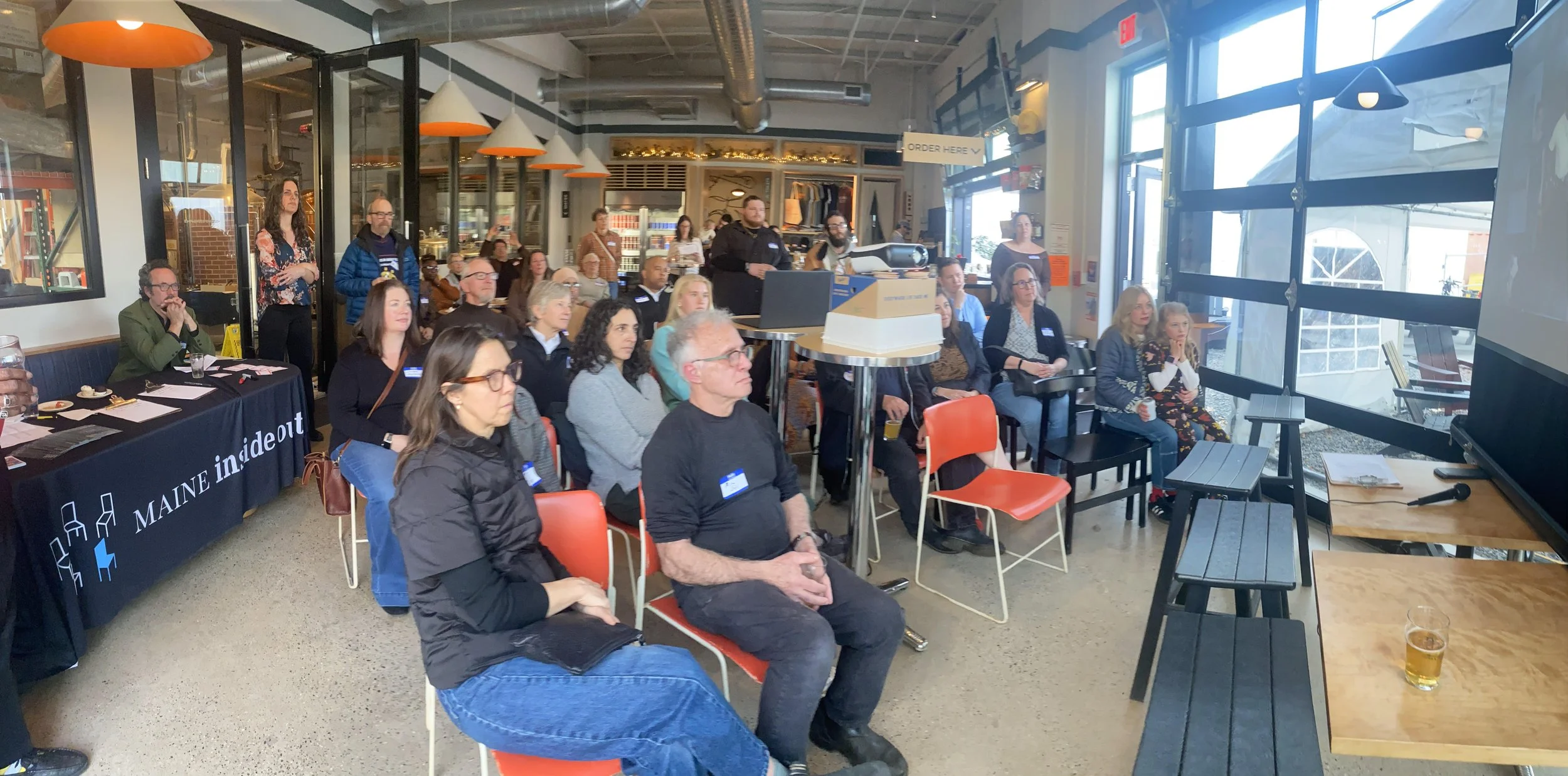 We held a pre-release screening of Maine Inside Out’s latest short film featuring the “Broken Clock” tour on March 30 at Orange Bike Brewing Co. in Portland, followed by heart-centered dialogue about mass incarceration among the audience, which included long-time MIO supporters, leaders, artists, and people joining an MIO event for the first time. The room was full of love, and resolve to take action. Deep gratitude to all who were able to join us, to Orange Bike for hosting, and to our amazing food donors: Bam Bam Bakery, Bite Into Maine, and Magissa.